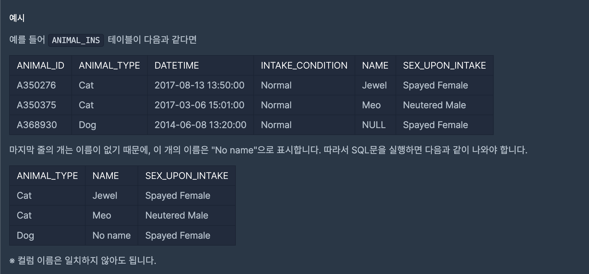 NAME이 존재하는 경우와 아닌 경우를 CASE문으로 구분지어 해결했다.